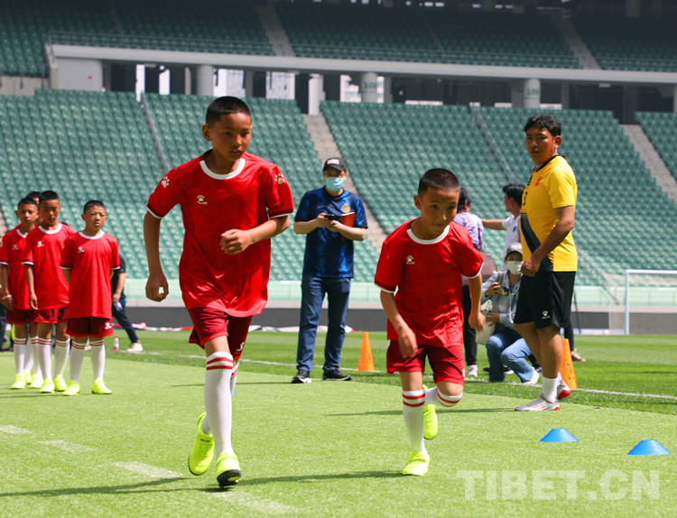 同樣在這片場(chǎng)館,6月1日,他們和北京國(guó)安的30名小球員進(jìn)行過一場(chǎng)交流賽。來自雪域風(fēng)一般的少年們完全忽略了北京炎熱的天氣,在場(chǎng)上放飛奔跑,追逐拼搶。