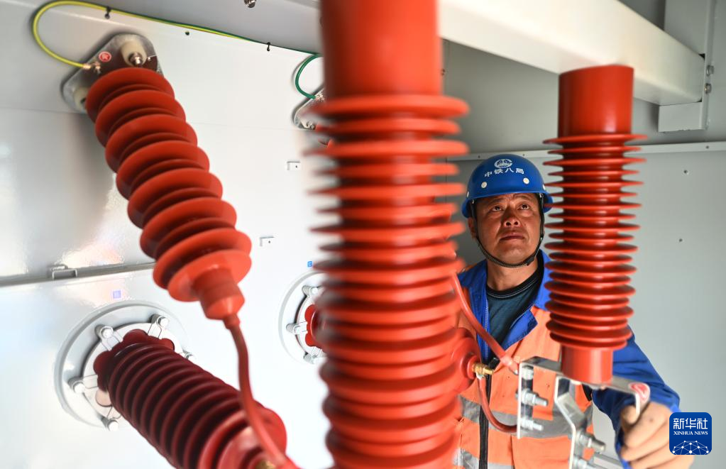 6月10日,中鐵八局施工人員在海西蒙古族藏族自治州德令哈市中國華電50萬千瓦光伏項目現(xiàn)場進行檢查。 新華社記者 張宏祥 攝