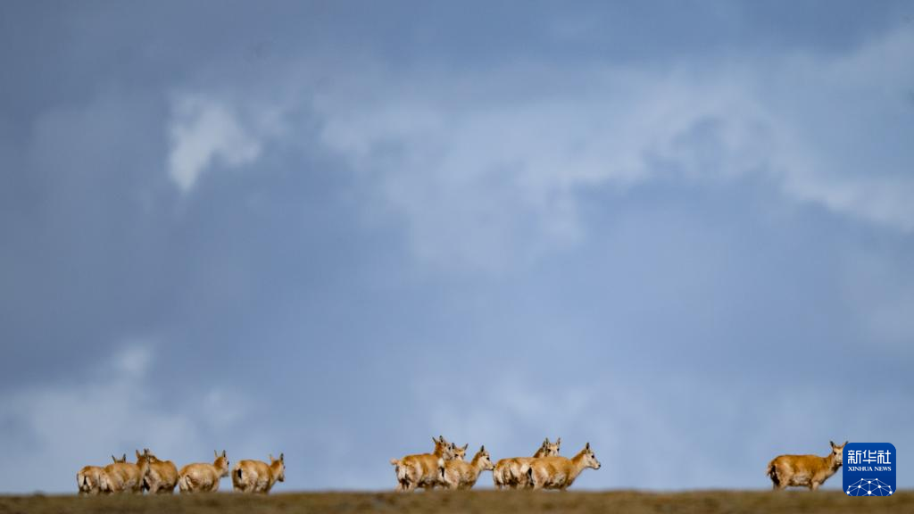 6月16日在可可西里卓乃湖區(qū)域拍攝的一群藏羚羊。 新華社記者 薛玉斌 攝
