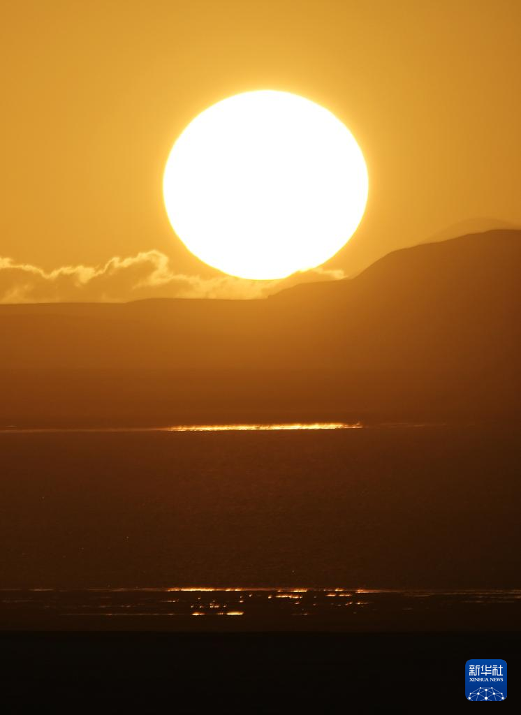 6月17日在可可西里卓乃湖拍攝的落日。 新華社記者 薛玉斌 攝