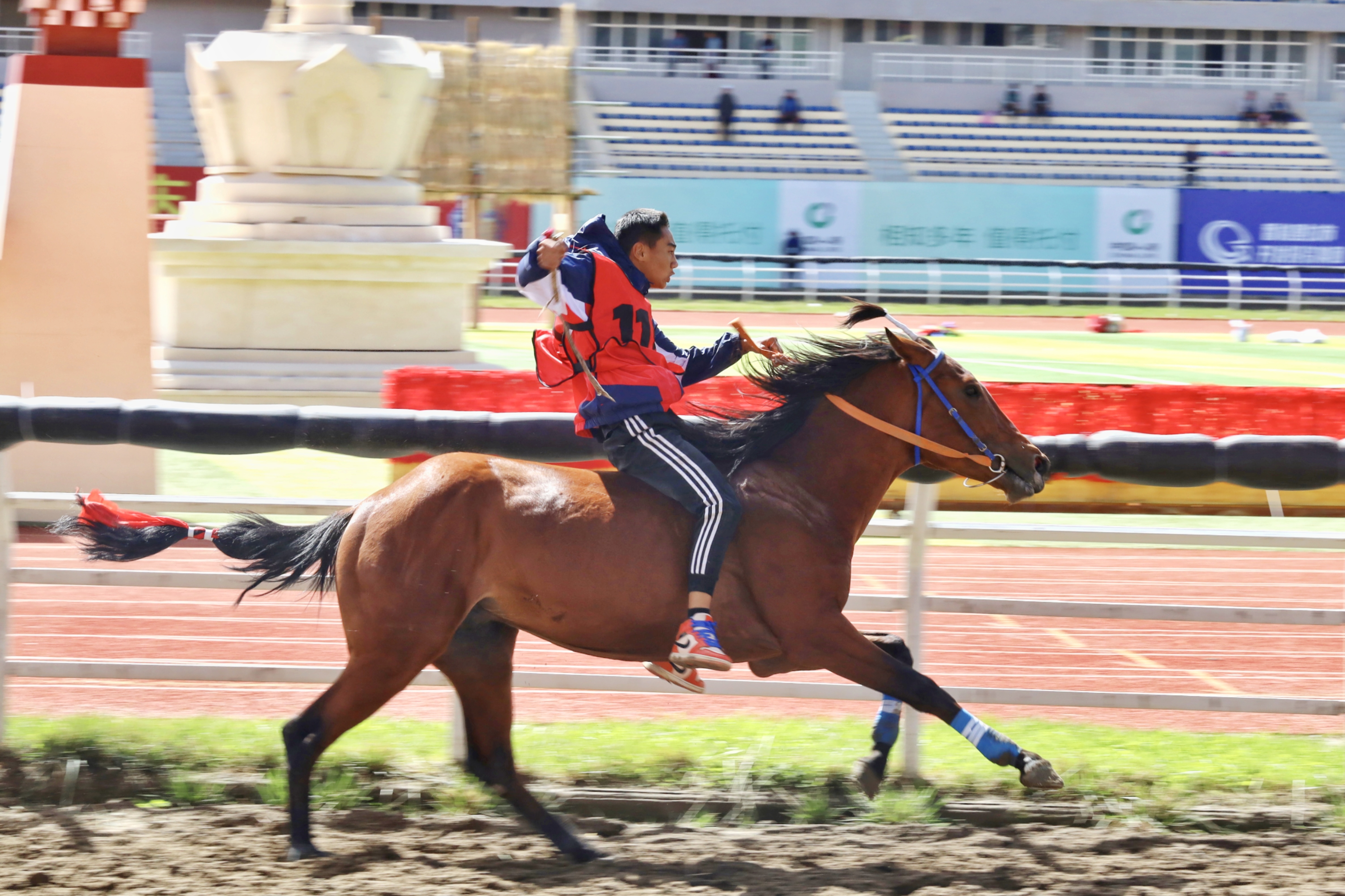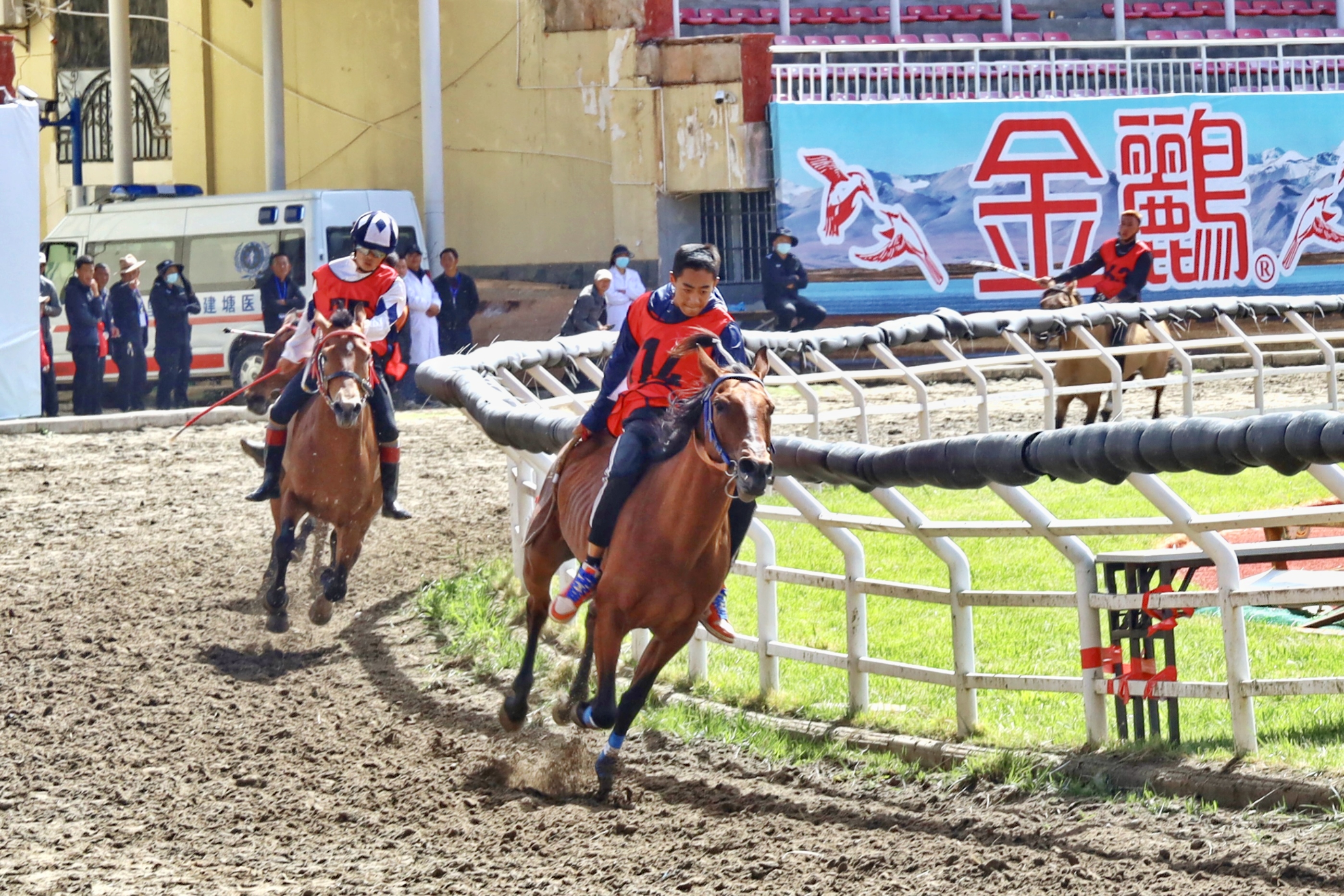 “我的馬剛比完賽,需要護(hù)理一下?!?月23日上午,剛結(jié)束香格里拉端午賽馬節(jié)乙組1000米速度賽馬項(xiàng)目,魯茸汪小顧不上自己休息,便急忙喘著粗氣往帳篷方向趕去,給馬腿綁上護(hù)具、敲開凍好的冰塊、給馬腿冰敷……行云流水的完成一系列操作后魯茸汪小才安下心來,“剛進(jìn)行了極速的奔跑,馬腿會有一些脹筋、關(guān)節(jié)腫脹等問題,需要用冷水沖洗、冰敷,不然它會很難受。”魯茸汪小解釋道。
