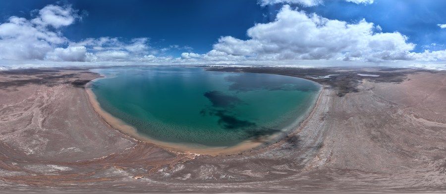 這是6月17日拍攝的可可西里卓乃湖(無(wú)人機(jī)全景照片)。新華社記者 張宏祥 攝