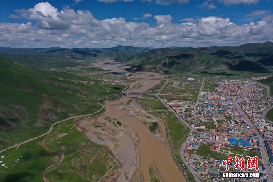 7月28日,航拍青海省果洛藏族自治州達(dá)日縣黃河辮狀水系。果洛州達(dá)日縣平均海拔在4200米以上,盛夏時(shí)節(jié),連綿的山巒披上“綠毯”,黃河流經(jīng)其境內(nèi)后,在開闊平緩的河道中數(shù)十條水流時(shí)而相匯時(shí)而分離,交織出巨型的辮狀水系,在群山和城鎮(zhèn)中蜿蜒流淌,形成獨(dú)特的高原壯美山河圖。