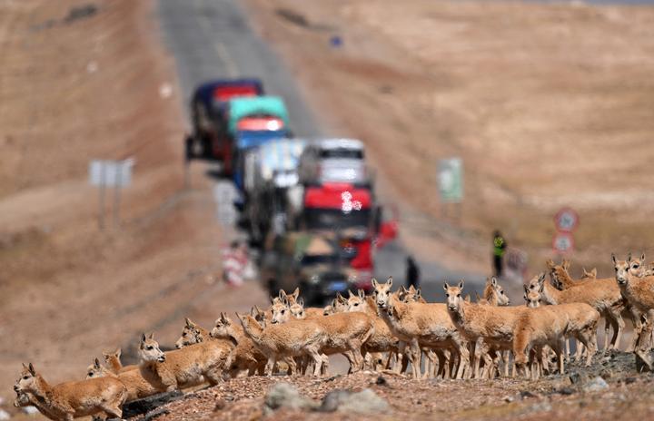 每年5至7月,“高原精靈”藏羚羊大遷徙拉開序幕,數(shù)萬只雌藏羚羊?qū)睦粘夭菰瓟y雌仔,一路向北跨越大山大河,奔赴數(shù)百公里外的可可西里——太陽湖、卓乃湖地帶產(chǎn)羔生育。