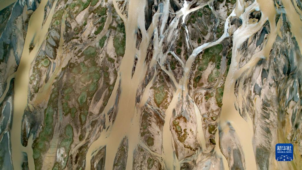在沱沱河與當(dāng)曲匯合處的囊極巴隴拍攝的辮狀河道局部(7月26日攝,無(wú)人機(jī)照片)。新華社記者 劉詩(shī)平 攝