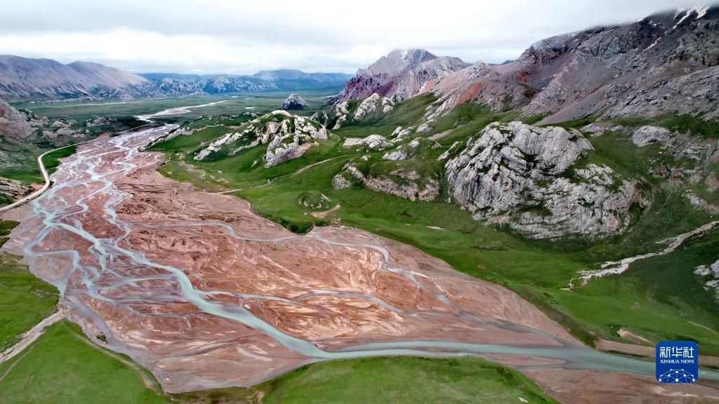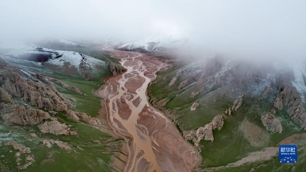 通天河支流的辮狀河道及周邊景色(7月26日攝,無(wú)人機(jī)照片)。新華社記者 劉詩(shī)平 攝