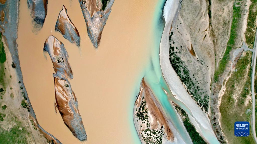 當(dāng)曲支流布曲與尕爾曲會(huì)合處(7月27日攝,無(wú)人機(jī)照片)。新華社記者 劉詩(shī)平 攝