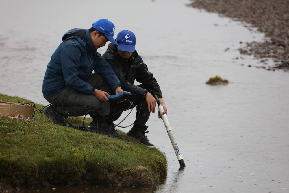 來自長江科學院河流研究所的科考隊員徐志成和楊緒海,每到一個采樣點就采集河道床沙和懸沙樣品,測量河寬、水深、比降、流速,對比此前科考觀測數(shù)據(jù),分析長江源區(qū)河道水沙輸移特性和河床演變情況。