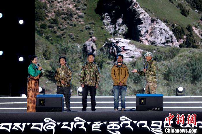 資料圖為紀錄片《雪豹和她的朋友們》導演奚志農(nóng)(右一)在雜多縣分享創(chuàng)作背后的故事。薛蒂 攝