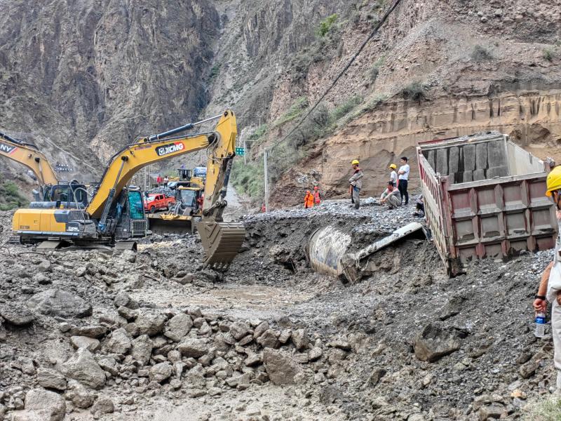 近日,受持續(xù)強(qiáng)降雨影響,G214線佛山鄉(xiāng)古水村附近K1911+750處發(fā)生泥石流災(zāi)害,造成交通中斷。德欽公路分局立即啟動(dòng)汛期保通應(yīng)急預(yù)案,第一時(shí)間組織應(yīng)急搶險(xiǎn)人員趕赴現(xiàn)場(chǎng),4臺(tái)裝載機(jī)、2臺(tái)挖掘機(jī)、4臺(tái)運(yùn)輸車全力投入搶通工作中,并協(xié)同交警實(shí)行交通管制,疏散滯留車輛。經(jīng)過(guò)多部門(mén)搶險(xiǎn)保通作業(yè),受阻路段順利實(shí)現(xiàn)半幅通行。圖為現(xiàn)場(chǎng)正在清理鏟運(yùn)泥沙。