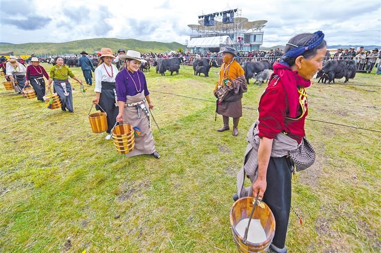 8月25日,四川省阿壩藏族羌族自治州紅原縣舉行第十一屆牦牛文化節(jié)牦牛產(chǎn)奶量比賽。紅原縣是優(yōu)良地方牦牛品種麥洼牦牛的核心產(chǎn)區(qū),擠牦牛奶是當(dāng)?shù)夭刈迦罕娭匾纳a(chǎn)生活方式,當(dāng)?shù)刂荚谕ㄟ^此項(xiàng)賽事讓更多人了解到牦牛文化的獨(dú)特魅力。