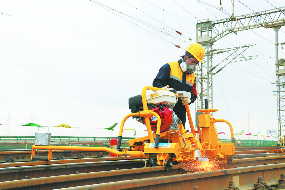察爾汗線路車(chē)間職工在打磨鋼軌。