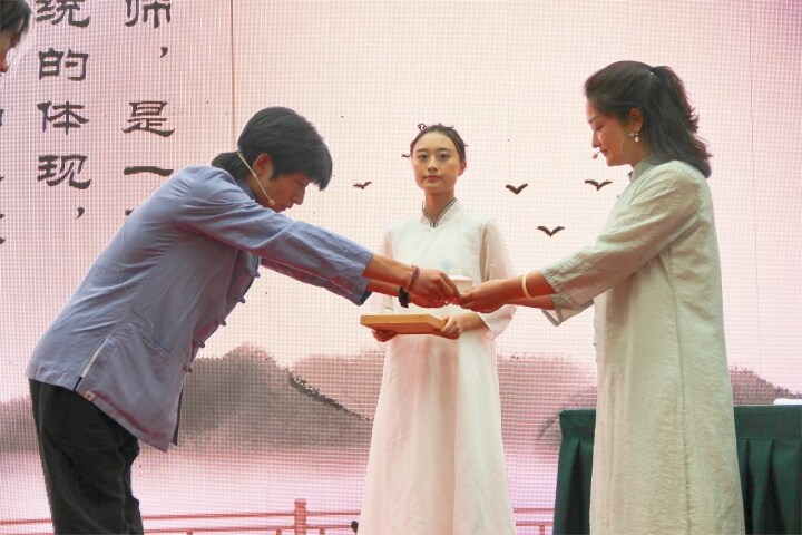 隨后,教師和同學(xué)們集體宣讀誓言,慷慨洪亮的聲音在宣告他們有信心做好一名稱職的人民教師、優(yōu)秀的學(xué)生。學(xué)生代表的發(fā)言充滿朝氣與活力,胸懷理想與信念,展現(xiàn)出同學(xué)們磨礪自我、奮斗青春的信心與抱負(fù)。教師代表的發(fā)言如良師益友娓娓道來,用榜樣的力量和長(zhǎng)者的親切,為同學(xué)們指點(diǎn)迷津、加油鼓勁,激勵(lì)同學(xué)們胸懷遠(yuǎn)志、堅(jiān)毅卓絕、奮發(fā)進(jìn)取、只爭(zhēng)朝夕!隨后,同學(xué)們?cè)谥鞒秩说闹敢旅C整衣冠、向老師鞠躬行禮,寓意此后正式踏入學(xué)門,明志于四方。