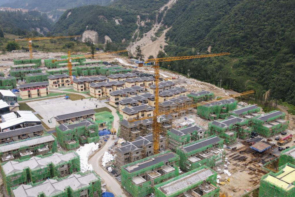 9月5日拍攝的位于甘孜州瀘定縣磨西鎮(zhèn)的幸福新村安置點(diǎn)(無人機(jī)照片)。新華社記者 胥冰潔 攝