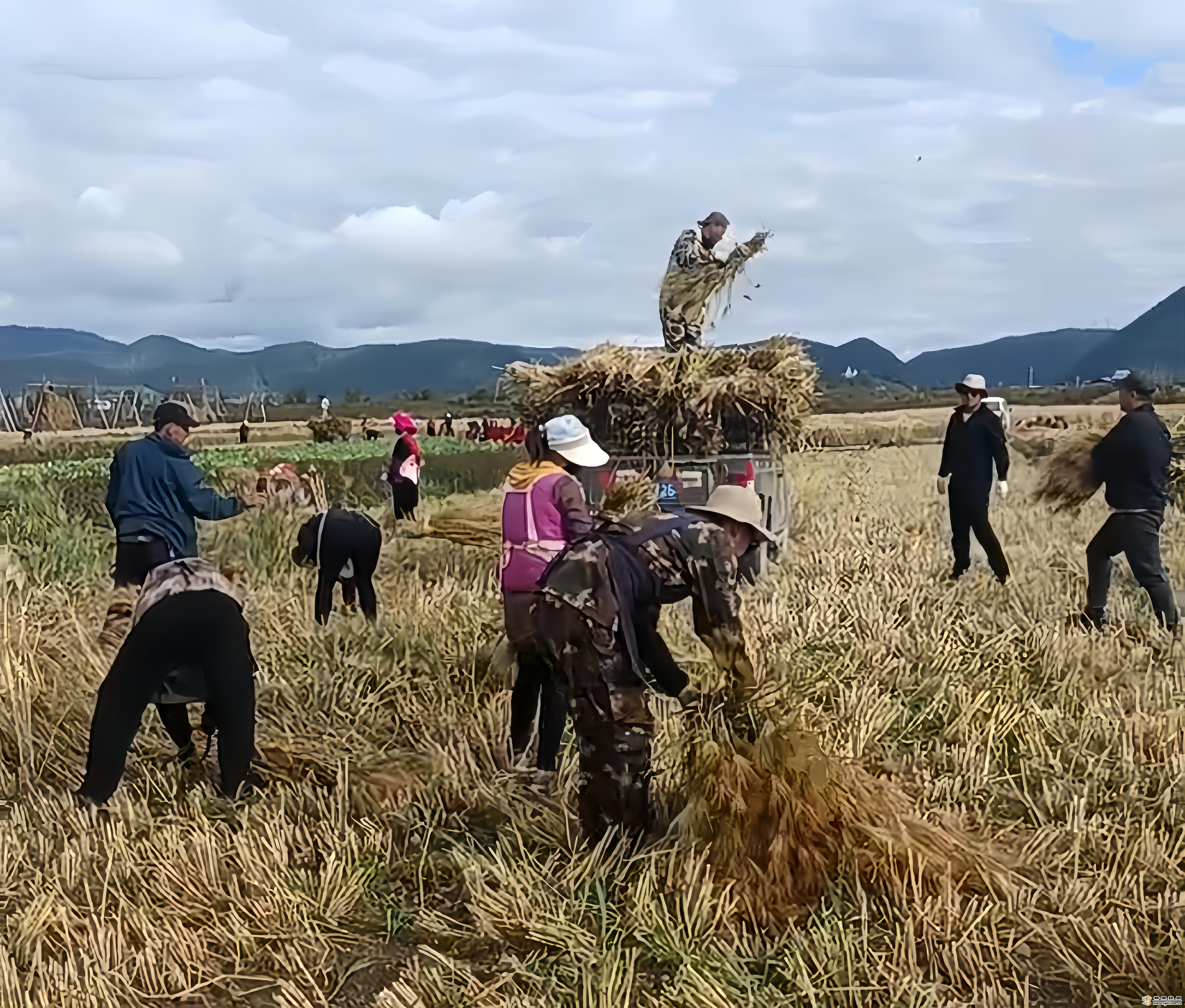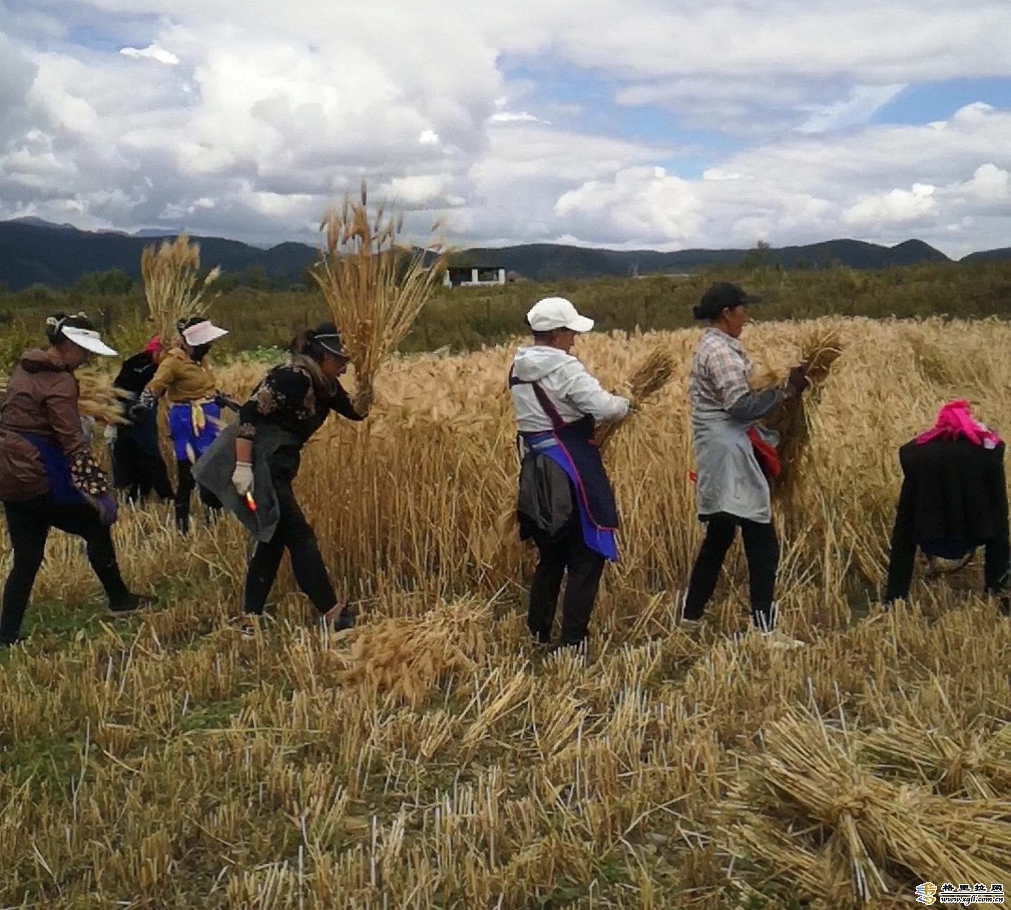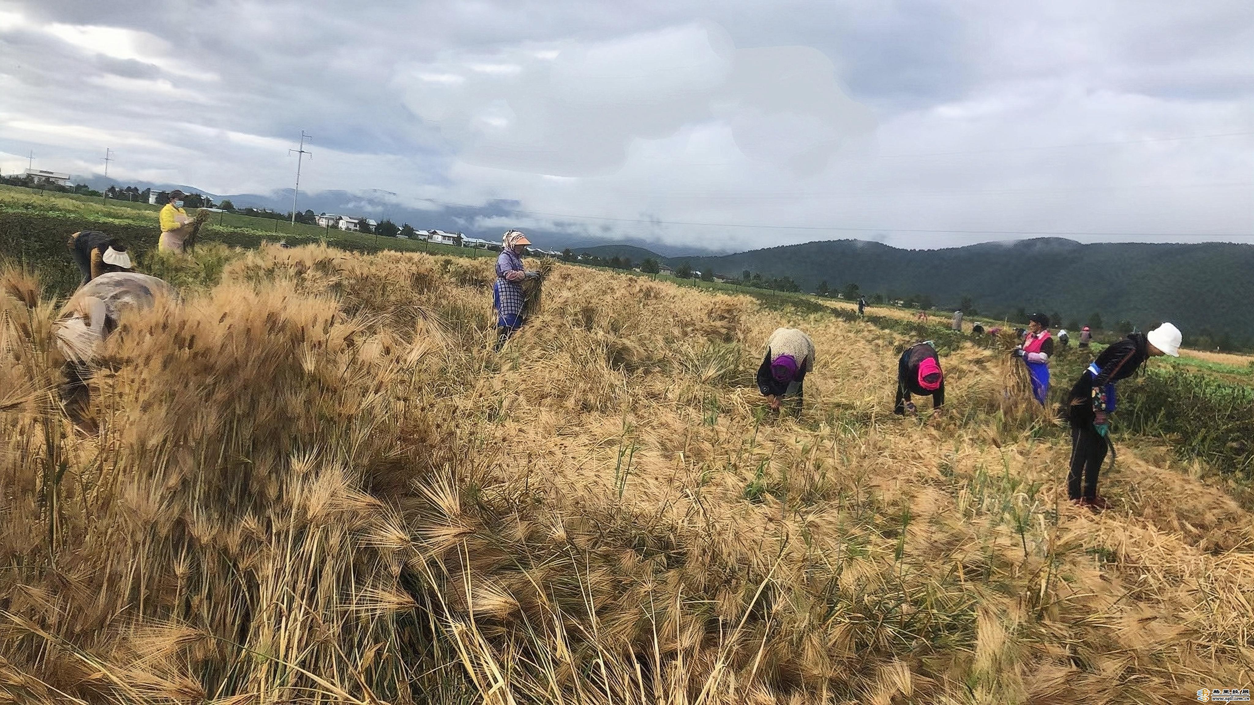 香格里拉市小中甸鎮(zhèn)聯(lián)合村青稞進入收割期,村民們臉上滿溢著收獲的喜悅開鐮收割、上架晾曬,田地間一派熱火朝天的繁忙景象。