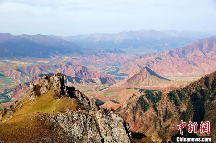 9月14日,在青海省海北藏族自治州祁連縣,記者航拍天境山。天境山位于八寶鎮(zhèn)拉洞村,距祁連縣城約6公里,這里人跡罕至、怪石嶙峋、山泉潺潺、古柏參天,站在觀景臺舉目四望,遠(yuǎn)山青翠如黛、羊群似珍珠灑落。