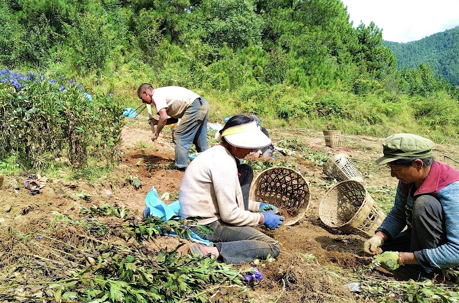 近日,維西傈僳族自治縣攀天閣鄉(xiāng)美洛村400余畝附子喜獲豐收。田間地頭,村民們?nèi)宄扇?,通力協(xié)作,將一顆顆采挖出來的附子收集成籮,集裝成袋,看著眼前的一袋袋附子,村民們都樂得合不攏嘴。“今年附子產(chǎn)量很高呢,按照去年的市場價今年一畝最多可有2萬收入”美洛村副主任和麗新說。