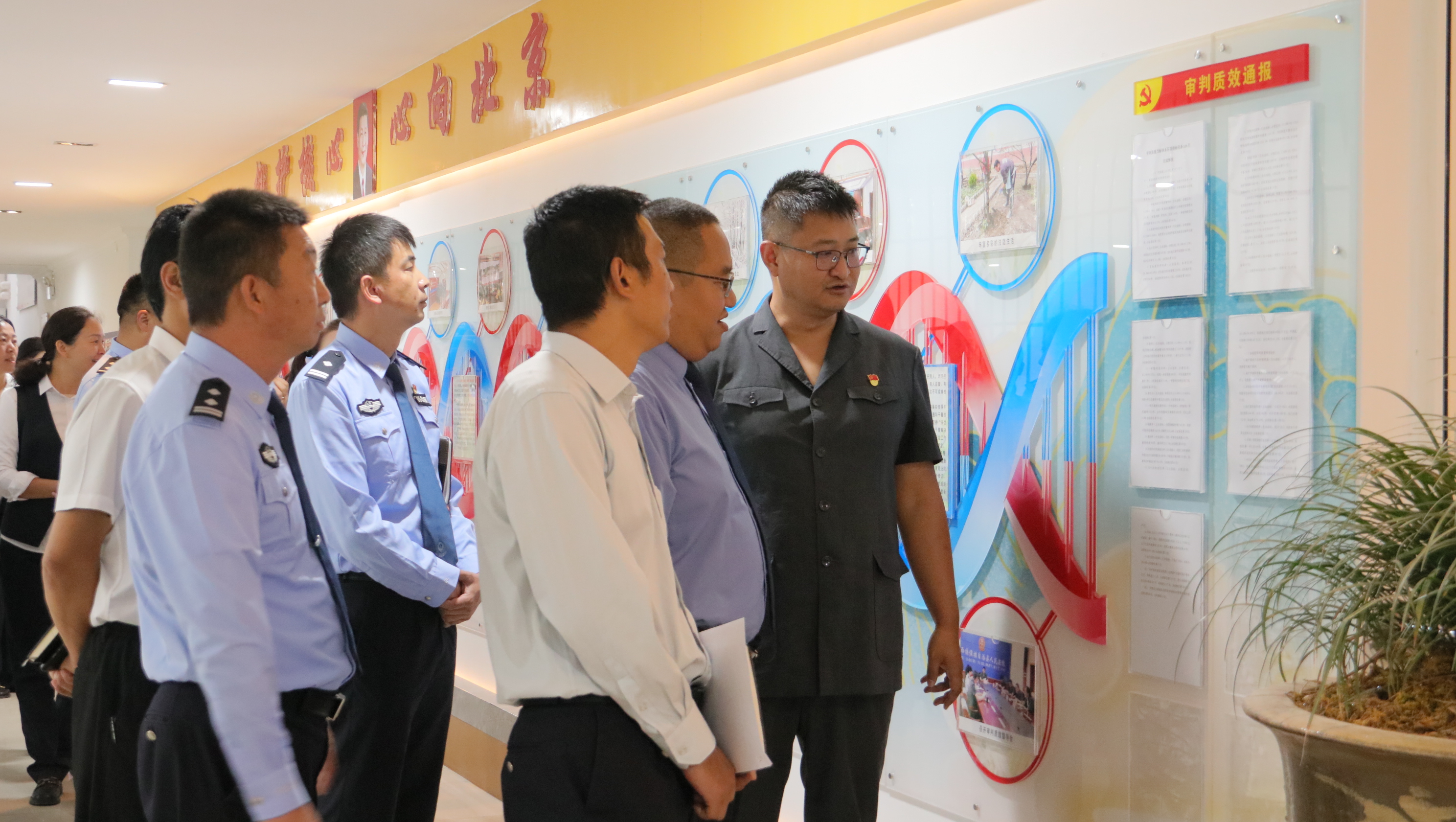 與法同行“零距離”。升旗儀式后,全體同志跟隨講解員進(jìn)入審判大樓,參觀了縣人民法院訴訟服務(wù)中心、黨建文化長廊,詳細(xì)了解了“蘭韻傈鄉(xiāng)·紅色天平”黨建文化品牌建設(shè)的特色亮點,通過參觀學(xué)習(xí)打開了政法系統(tǒng)黨組織互幫互學(xué)、共創(chuàng)共贏的新局面。并現(xiàn)場體驗?zāi)M法庭,將法院庭審的真實場景通過情景再現(xiàn)的形式,直觀地展示給在場的黨員干部及工作人員,進(jìn)行“以案說法、以案示警”。通過“沉浸式體驗”,讓全體黨員親身感受了審判工作氛圍,引導(dǎo)大家進(jìn)一步筑牢政治忠誠,強(qiáng)化法治思維,牢記初心使命,立足崗位職責(zé),扎實推進(jìn)全縣政法工作再上新臺階。