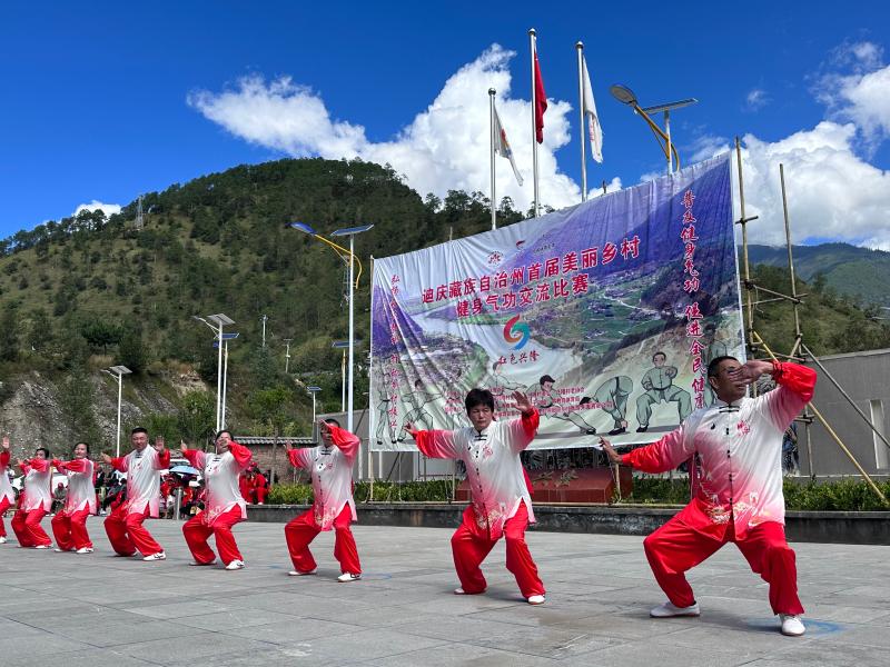 迪慶藏族自治州首屆美麗鄉(xiāng)村健身氣功交流比賽在香格里拉市金江鎮(zhèn)興隆村紅色研學(xué)基地開(kāi)賽