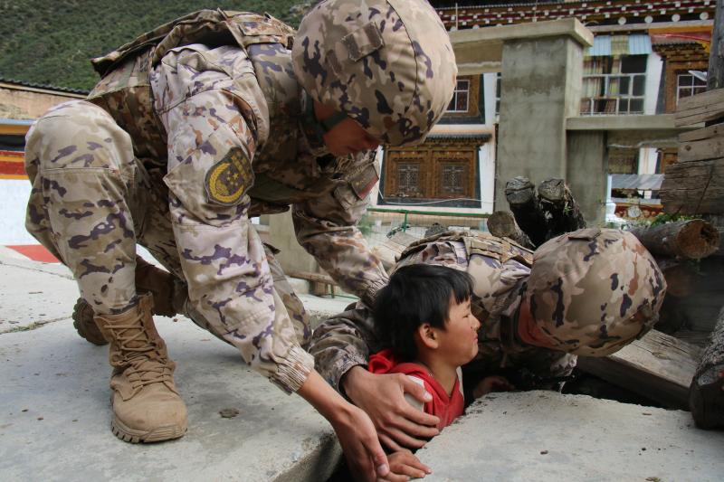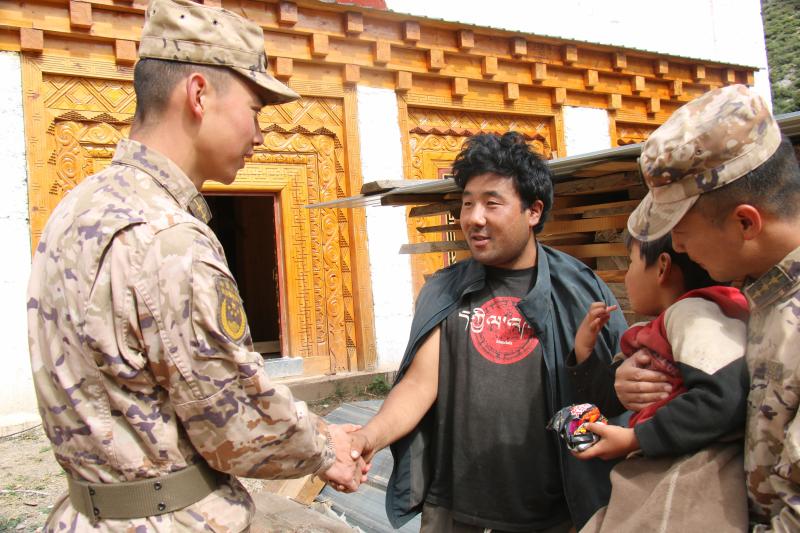 “非常感謝你們,不僅幫助孩子脫險,還這么熱心地給他擦藥。”東旺鄉(xiāng)村民格桑緊緊握住官兵們的手,感激不已地說。