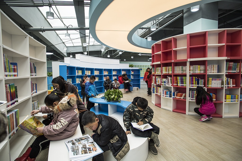 圖為學(xué)生和家長在圖書館閱讀書籍。