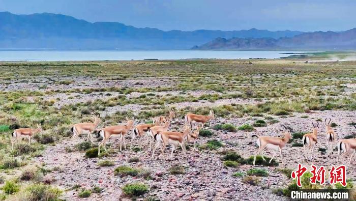 圖為鵝喉羚群在濕地公園漫步。 海西州融媒體中心供圖