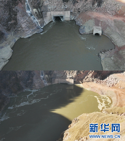 瑪爾擋水電站蓄水前后對比圖。(上圖為蓄水前、下圖為蓄水后)