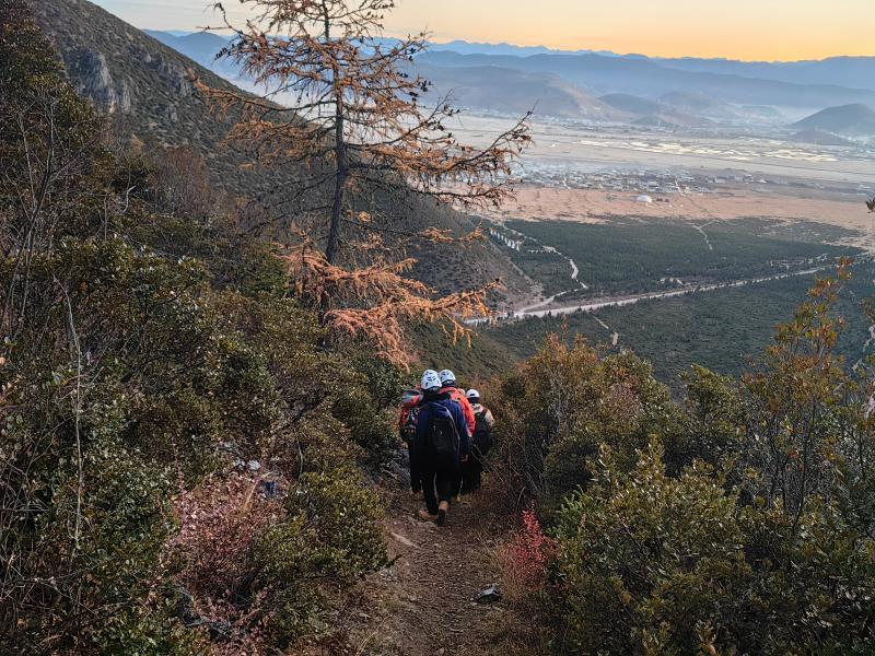 11月的香格里拉市城郊,夜間溫度已達(dá)零下10攝氏度。面對(duì)緊急情況,香格里拉消防站高海拔專業(yè)救援隊(duì)立即派出2車10人,攜帶專業(yè)救援裝備與補(bǔ)給物資出發(fā)救援。根據(jù)報(bào)警人提供的經(jīng)緯度定位信息,消防救援人員利用北斗衛(wèi)星終端不斷修正方向進(jìn)行搜救。行進(jìn)途中,山勢陡峭,草木叢生,夜間山上氣溫驟降,可見度低……種種不利因素,給搜救工作帶來極大挑戰(zhàn)。至14日凌晨3點(diǎn)20分,搜索半徑接近5公里,海拔上升到4300米?!坝腥藛??有人嗎?”救援人員一邊喊著,一邊向石卡雪山深處搜索?!拔覀冊谶@!我們在這!”消防救援人員在黑暗中聽到有人呼喊,立即順著聲音方向?qū)ふ疫^去。