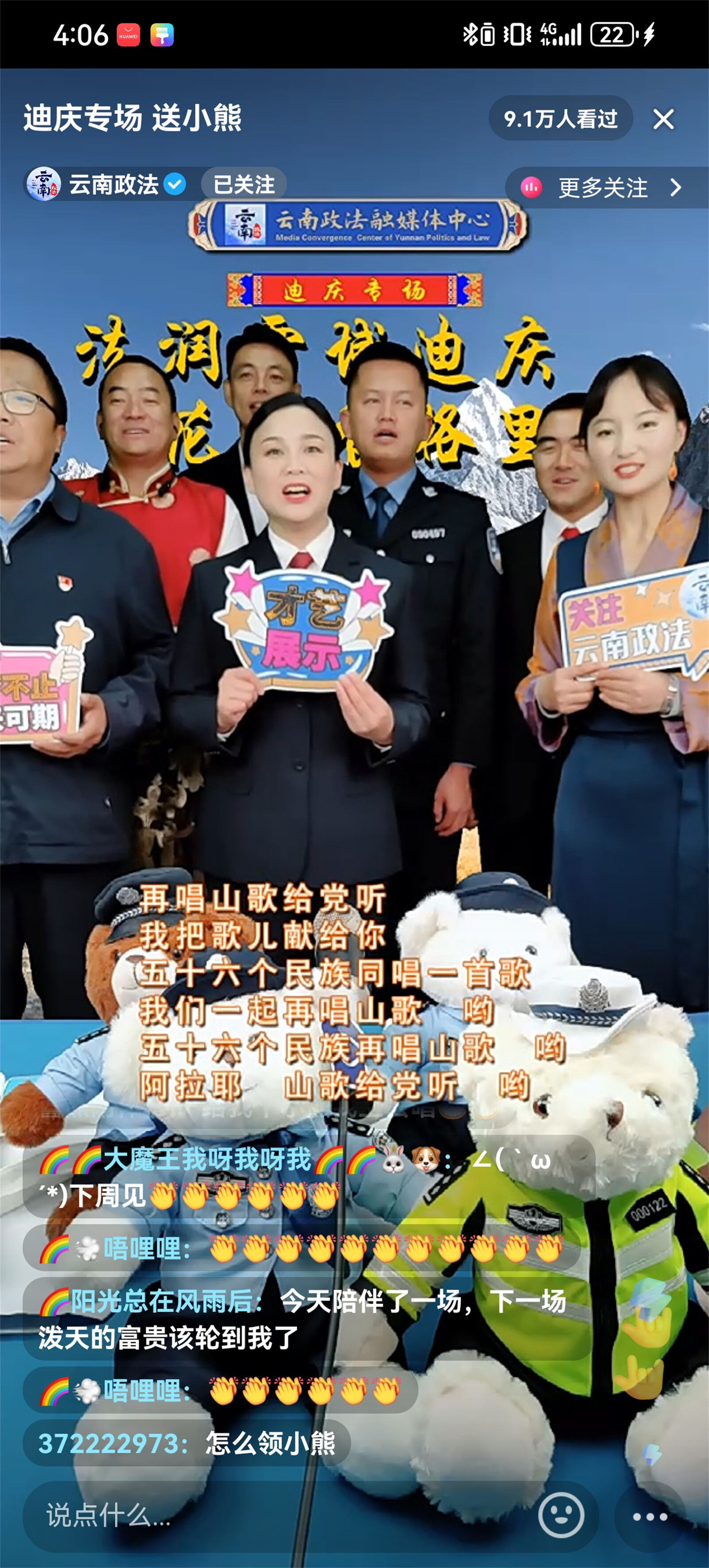 近日,迪慶州政法干警走進云南政法普法強基直播間開展“法潤雪域迪慶、花開香格里拉”迪慶州普法專場直播,直播聚焦群眾關切,緊密聯(lián)系時事熱點,帶廣大網(wǎng)友體驗了一場內容豐富的普法之旅,共吸引9.1萬人觀看,獲點贊超10.4萬。