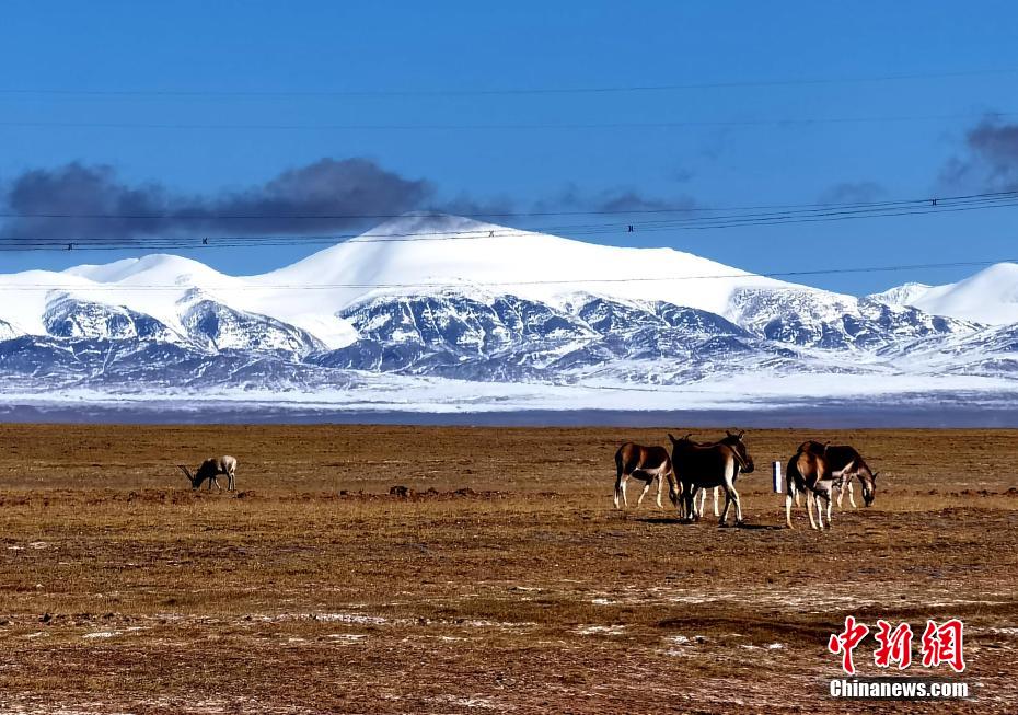 可可西里位于青藏高原的中心部分,是世界上海拔最高、生態(tài)環(huán)境最為原始和完整的高寒草甸和沙漠草原生態(tài)系統(tǒng)之一,這里也是野生動物的天堂,被譽為“高原精靈”的藏羚羊,各類珍稀野生動物藏野驢、野牦牛、黃羊等,“組團”漫步覓食。圖為可可西里自然保護區(qū)內(nèi)的藏羚羊與藏野驢。葛永祥 攝