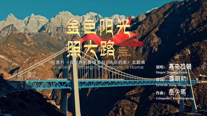 主題曲《金色陽光照大路》MV始于動(dòng)車飛馳通過金沙江特大橋的畫面,雪山腳下、虎跳峽之上,一條“金色大道”已徐徐鋪就。從央宗一家放牧轉(zhuǎn)場的羊腸小道,到今日開通運(yùn)營的麗香鐵路,該片將云南涉藏洲縣的發(fā)展進(jìn)步、社會(huì)和諧、民眾幸福的故事展現(xiàn)在全世界觀眾面前。