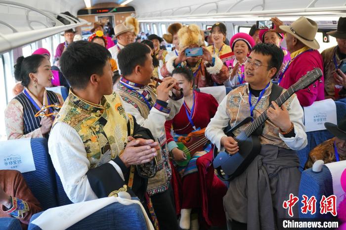 飛速行駛的列車上,不同民族的乘客紛紛亮出“看家本領(lǐng)”,載歌載舞慶祝麗香鐵路開通。麗香鐵路沿線世居的藏、傈僳、納西等民族長期交流、交往、交融,形成互相尊重、欣賞、學習的優(yōu)良傳統(tǒng)和豐富多彩的民族文化。