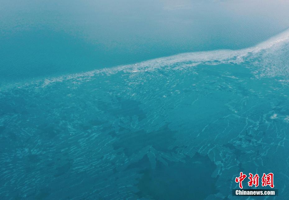 12月13日,航拍青海省海南藏族自治州共和縣境內(nèi)的青海湖漸次封凍。仲冬時節(jié),中國內(nèi)陸最大咸水湖、享有“高原藍寶石”美譽的青海湖,由岸邊向湖心漸次封凍,進入冰封季,冰塊如破碎的水晶漂浮在湖面上,成為冬日青海湖奇特景觀。