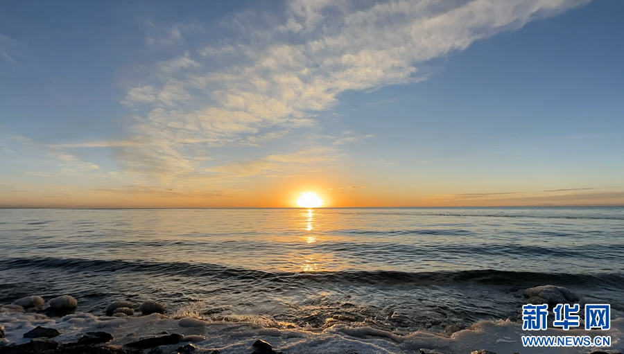 冬日的青海湖日出。新華網(wǎng) 張世偉 攝
