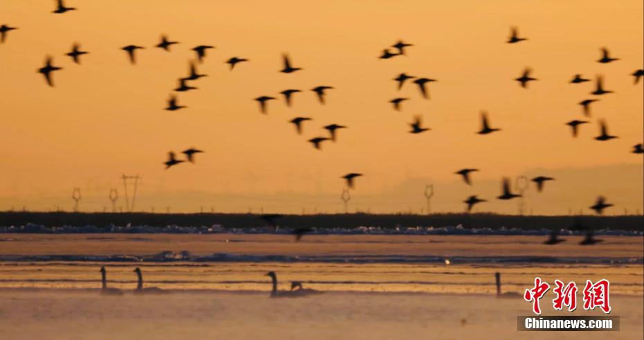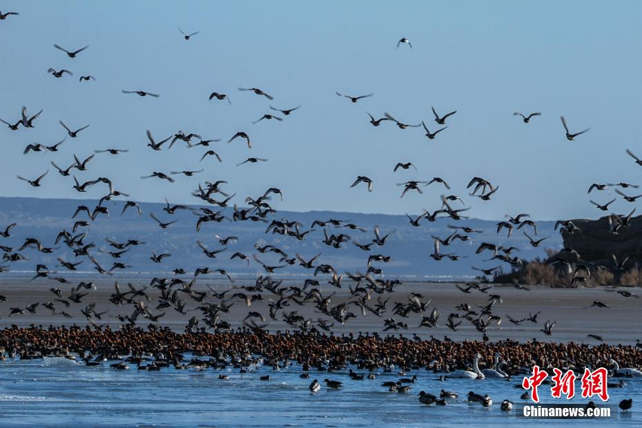 青海省海西州:首批越冬候鳥飛抵柴達(dá)木盆地托素湖