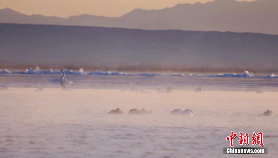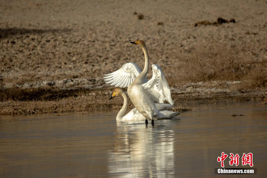 上百只天鵝飛抵柴達(dá)木盆地可魯克湖越冬