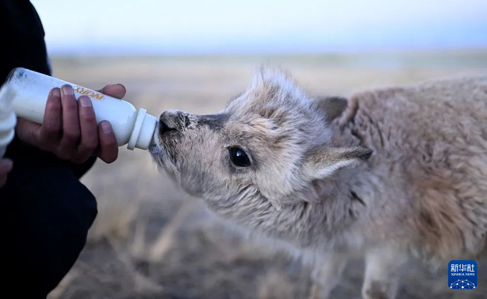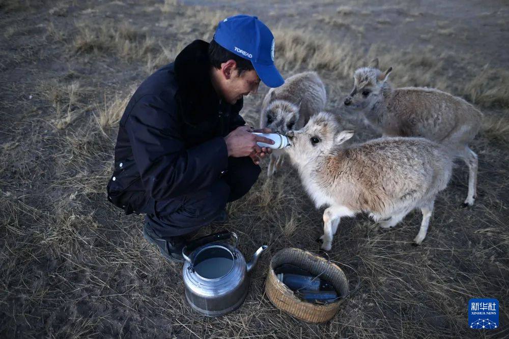 “這三只小家伙都是去年藏羚羊遷徙產(chǎn)仔時(shí),我們從‘藏羚羊大產(chǎn)房’卓乃湖救助回來的,現(xiàn)在它們已經(jīng)快半歲了,你看它們吃得多香。”才文多杰一邊將“流著汗珠”的奶瓶喂給小羊,一邊觀察著小藏羚羊的身體狀況。
