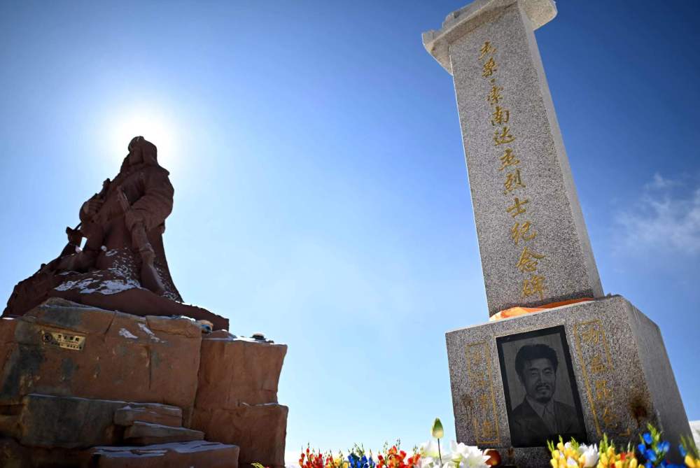 這是位于昆侖山口的索南達杰紀(jì)念碑(1月18日攝)。新華社記者 張宏祥 攝