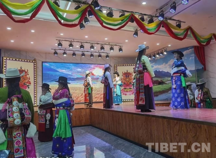服飾表演《走進(jìn)新時(shí)代》展示了藏族傳統(tǒng)服飾的時(shí)尚之美,蘊(yùn)含了藏族人民的工藝智慧,審美情趣等內(nèi)涵。