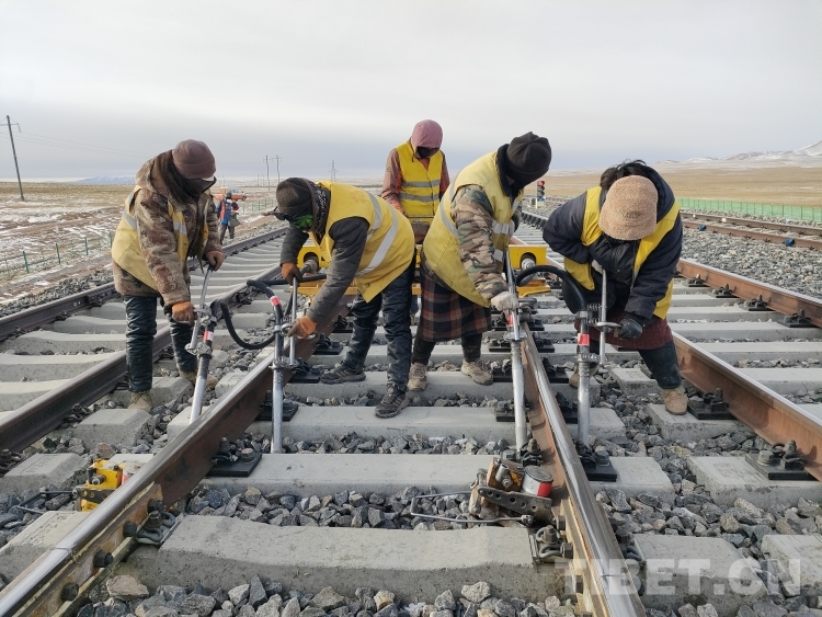 中國西藏網(wǎng)訊 2月9日,大年三十,中國鐵路青藏集團(tuán)有限公司格爾木工務(wù)段沱沱河線路車間通天河線路工區(qū)的10名職工驅(qū)車1小時(shí)來到青藏鐵路塘崗站,對(duì)鐵路線路設(shè)備病害進(jìn)行整治。