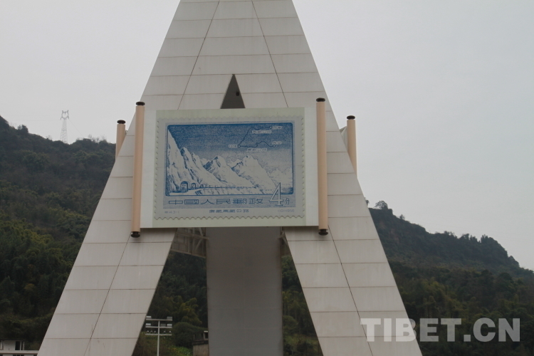 1956年3月30日,中華人民共和國第一套公路建設(shè)特種郵票—《康藏、青藏公路》發(fā)行,這套郵票的編號(hào)是“特14”,特14第一枚“3-1”郵票票面為淡藍(lán)色,主體畫面是一座挺拔冷峻的雪山。山腳下,一列車隊(duì)正沿著一條狹長的公路逶迤前行。公路一面緊貼懸崖,一側(cè)緊臨深淵。在這枚郵票畫面的右上方,有一幅簡單的康藏、青藏公路路線圖,上面標(biāo)注康藏公路的起點(diǎn)為“雅安”,這是雅安第一次出現(xiàn)在郵票這種“國家名片”上。