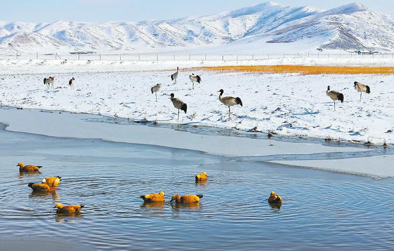 黑頸鶴是世界上唯一生長、繁衍在高原的鶴類。每年3月中下旬,在云貴高原越冬的黑頸鶴就開始陸續(xù)遷徙到紅原、若爾蓋等地繁衍生息。等到11月氣溫下降,這些黑頸鶴又將再次南遷。