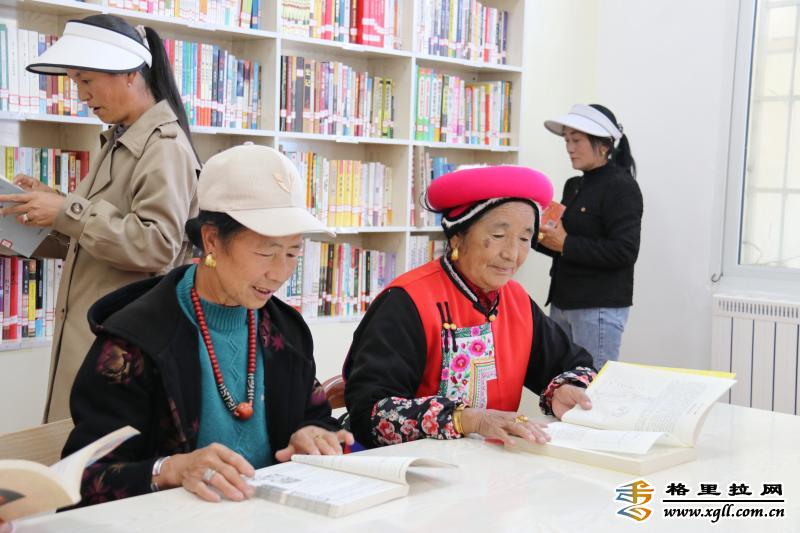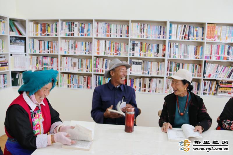 在香格里拉市建塘鎮(zhèn)北郊社區(qū)農(nóng)家書(shū)屋,身著民族服飾的老人們安靜地翻閱著各類(lèi)書(shū)籍?!断愀窭锢h志》《中醫(yī)養(yǎng)生》《家常菜做法大全》等書(shū)籍讓老人們沉浸在知識(shí)的海洋里。