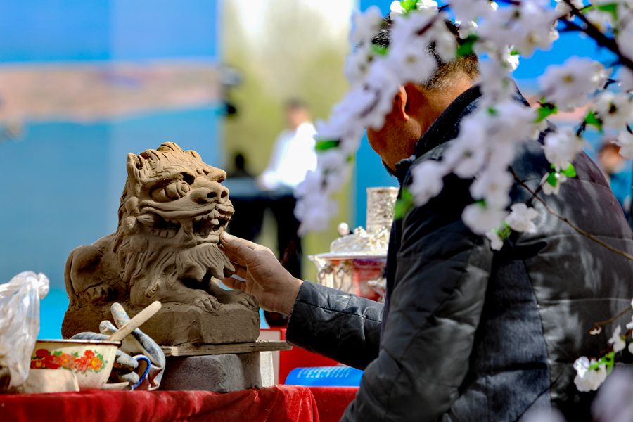 活動(dòng)現(xiàn)場(chǎng),手藝人正在制作泥雕。新華網(wǎng) 黃開(kāi)森 攝