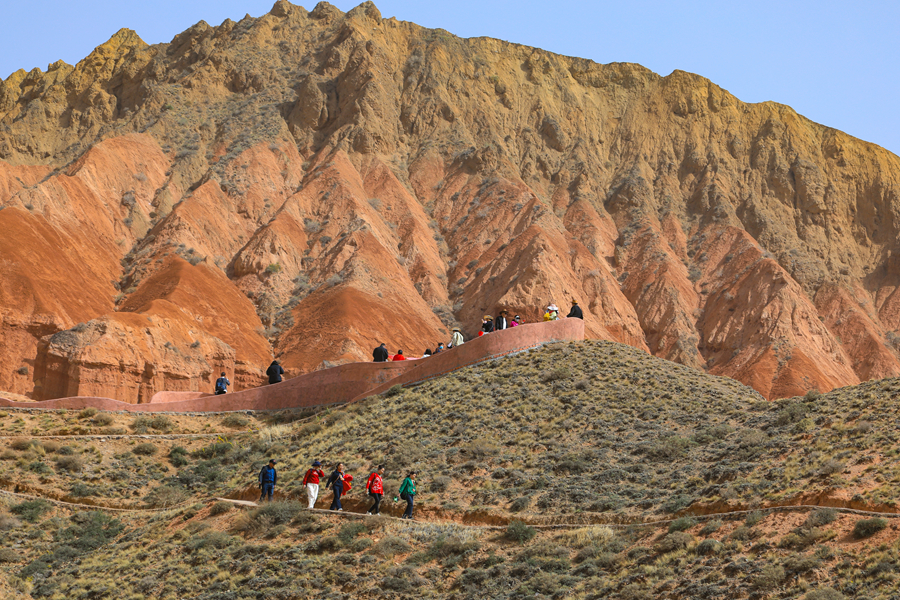 圖為游客在青海貴德國(guó)家地質(zhì)公園內(nèi)游玩。新華網(wǎng) 黃開(kāi)森 攝