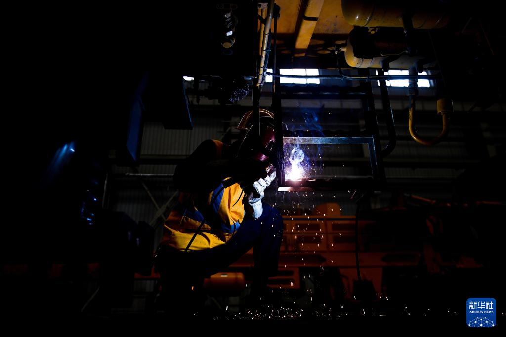 4月25日,中國鐵路青藏集團(tuán)有限公司西寧工務(wù)機(jī)械段職工在焊接車梯。新華社記者 張龍 攝