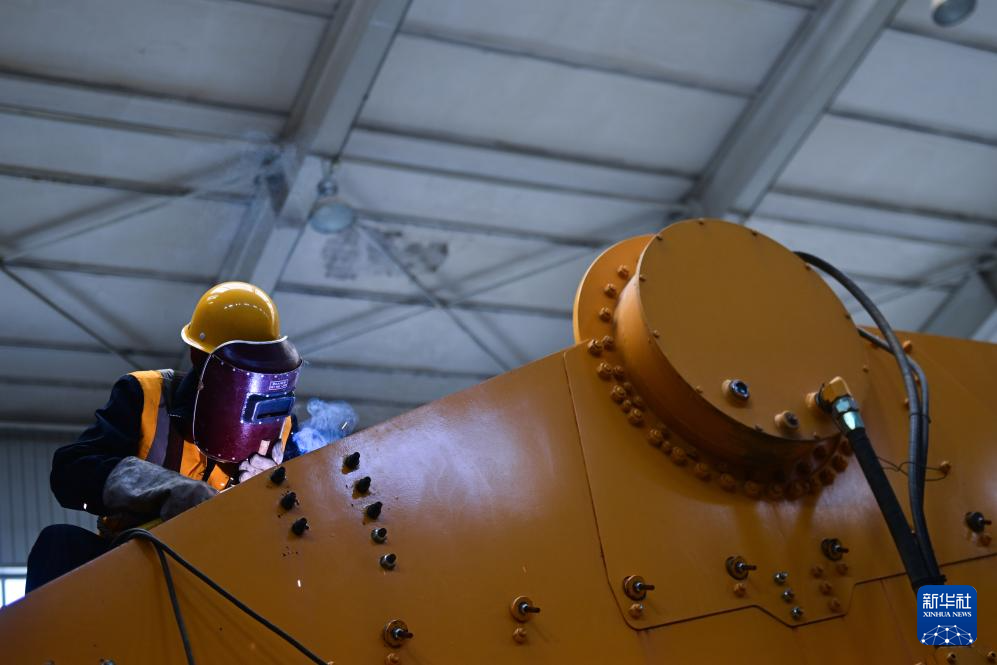 4月25日,中國鐵路青藏集團(tuán)有限公司西寧工務(wù)機(jī)械段職工在焊接振動篩。新華社記者 張龍 攝