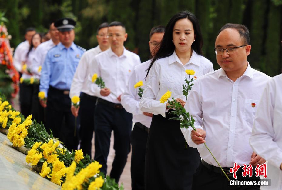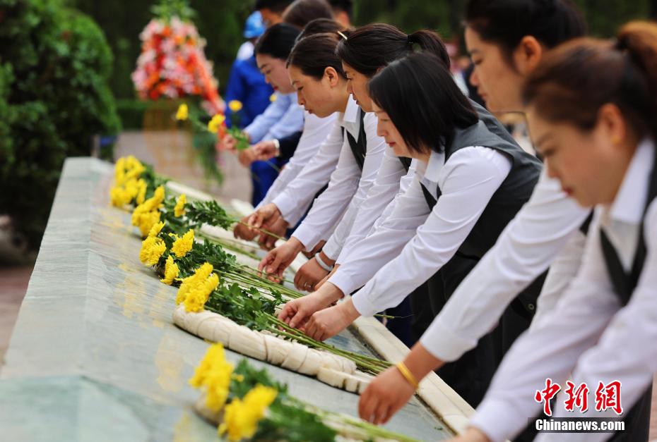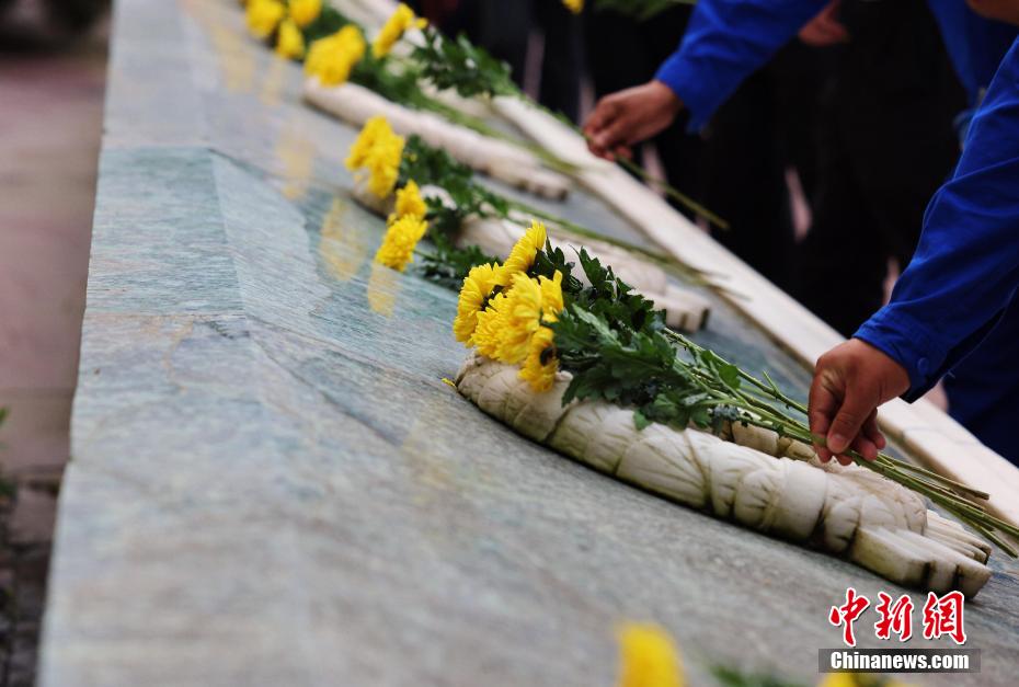 圖為敬獻(xiàn)鮮花。盧國彤 攝