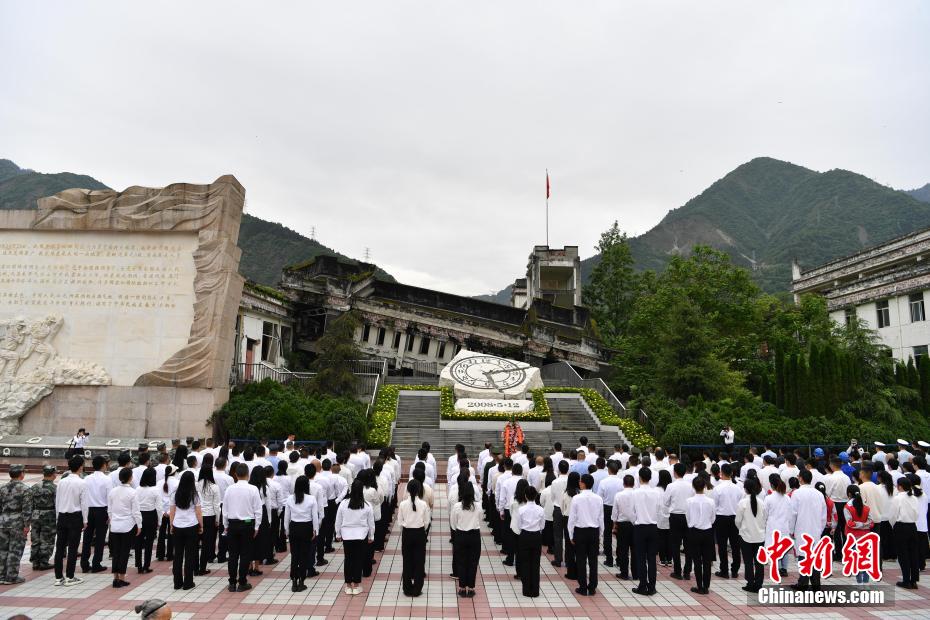 5月12日,四川省汶川縣在映秀鎮(zhèn)漩口中學(xué)遺址開展“5·12”汶川特大地震16周年追思活動(dòng)。來自汶川縣和全國各地的民眾為在汶川地震中遇難的同胞默哀,獻(xiàn)花祭奠,表達(dá)對(duì)逝者的哀思和懷念之情。圖為敬獻(xiàn)鮮花。盧國彤 攝