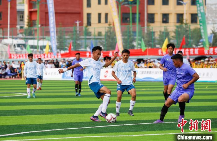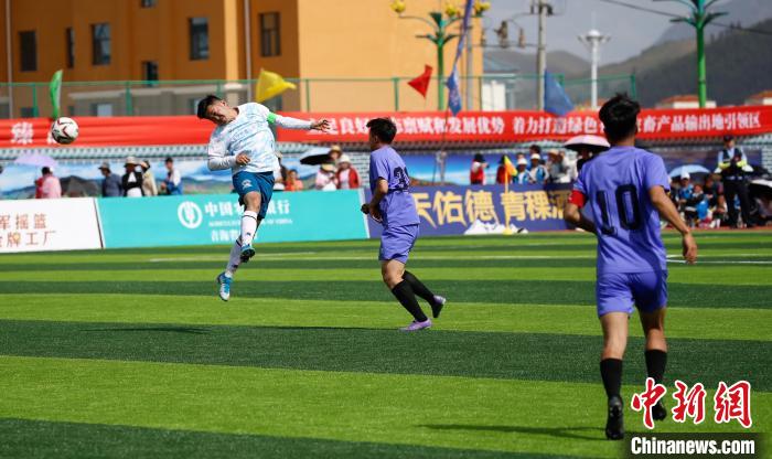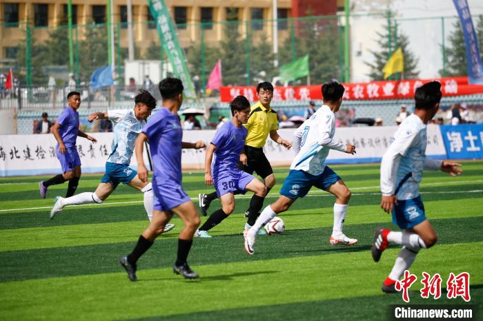 5月25日,“大美青?!じ咴闱颉背?jí)聯(lián)賽海北賽區(qū)首場(chǎng)比賽,在平均海拔2866米的青海省海北藏族自治州門(mén)源回族自治縣進(jìn)行,海北祁連山藏羊隊(duì)主場(chǎng)3:1戰(zhàn)勝海西柴達(dá)木枸杞隊(duì),迎來(lái)開(kāi)門(mén)紅?,F(xiàn)場(chǎng)兩萬(wàn)多名觀(guān)眾為隊(duì)員們吶喊助威,賽場(chǎng)外,70余種海北州特優(yōu)農(nóng)畜產(chǎn)品吸引民眾品嘗購(gòu)買(mǎi)。